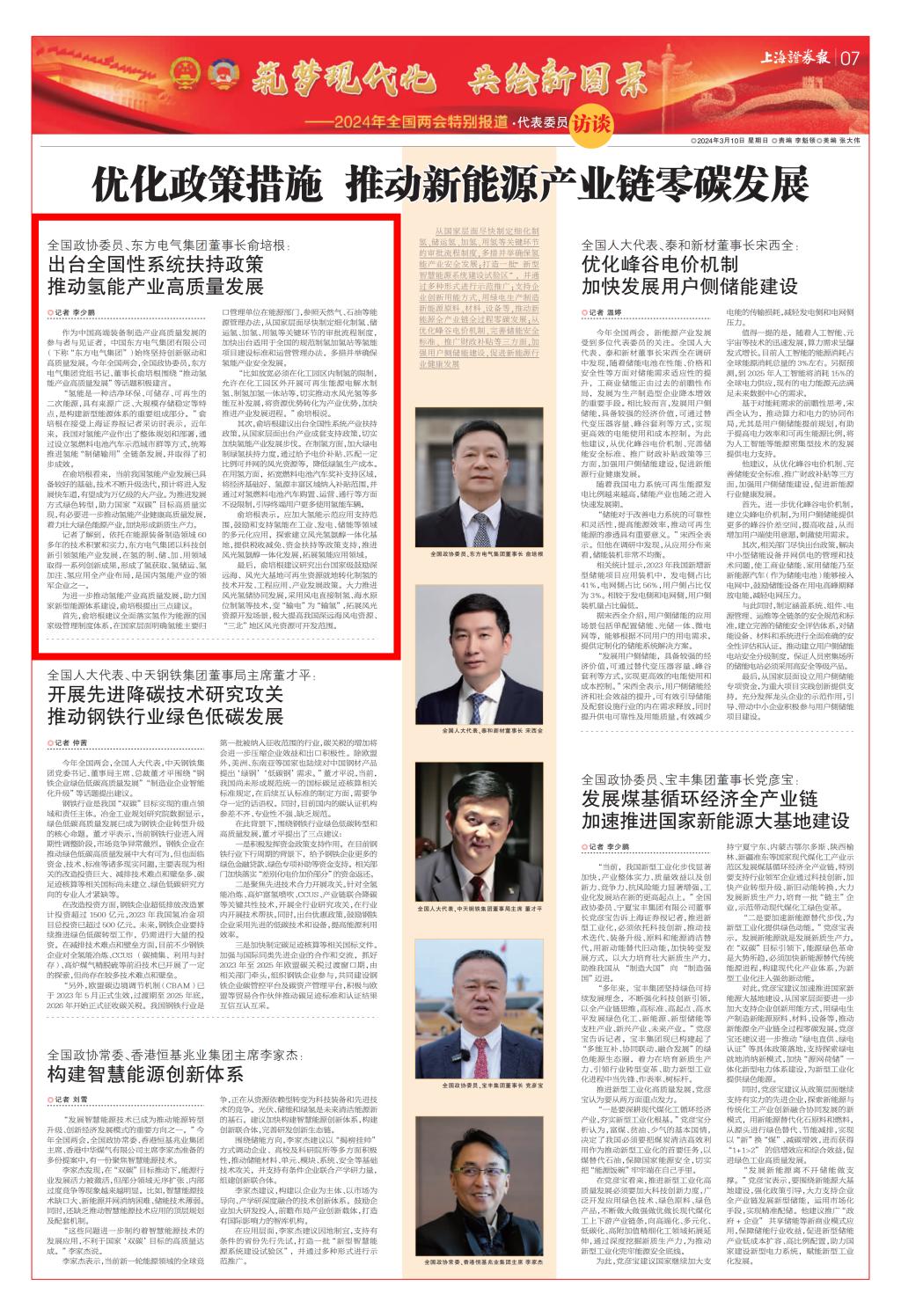 [上海报]全国政协委员、人生就是搏集团董事长俞培根:出台全国性系统扶持政策推动氢能产业高质量发展